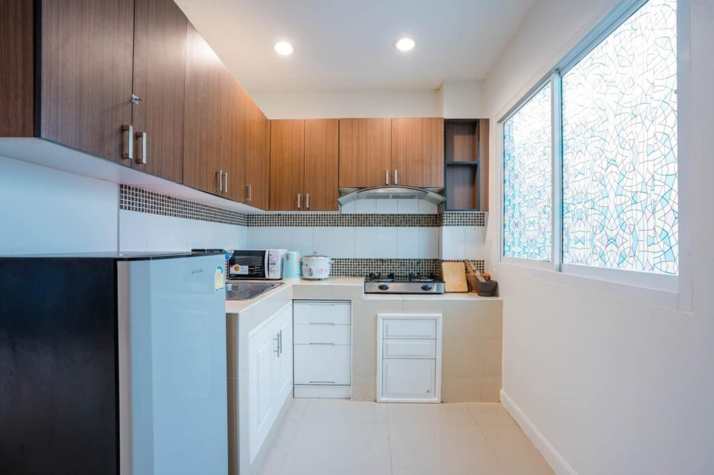 อุปกรณ์ทำครัวมีให้ครบ จาน ชาม ช้อน หม้อหุ้งข้าว เตาแก๊ส กระทะ เตาไมโครเวฟ เตาปิ้งย่างฯลฯ