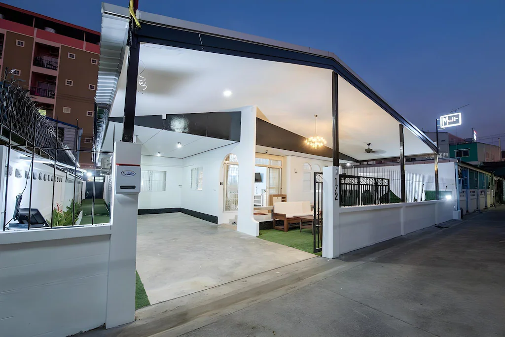 - จุดเด่นไฮไลท์: ถ้าแก๊งของคุณมีคนอยากไปช้อปปิ้ง, มีคนต้องไปติดต่อธุระที่ ม.บูรพา หรืออยากหาของกินง่ายๆ ทั้งวันทั้งคืน หลังนี้คือคำตอบ! จุดเด่นที่สุดคือ “ทำเลที่ตั้ง” ที่อยู่ในย่านมหาวิทยาลัยบูรพาอย่างแท้จริงตัวบ้านเป็นสไตล์โคโลเนียลผสมกลิ่นอายทะเล มี 3 ห้องนอน 2 ห้องน้ำ รองรับได้ 8-12 คน มีพื้นที่ปาร์ตี้และเตา BBQ นอกบ้านและยังมีของฟรีในครัวให้แบบจุกๆ (น้ำเปล่า, โคล่า, บะหมี่กึ่งสำเร็จรูป)
