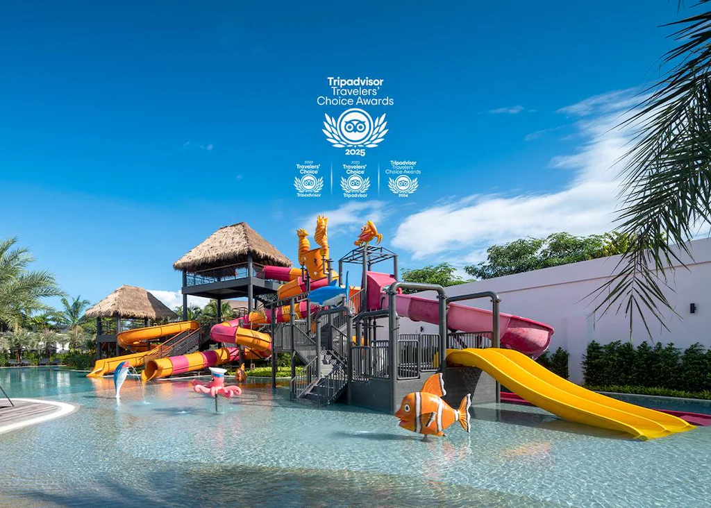 จุดเด่นที่เปรียบเสมือนหัวใจของรีสอร์ทแห่งนี้คือสวนน้ำขนาดใหญ่ที่ตั้งอยู่ใจกลางที่พัก ประกอบด้วยสไลเดอร์สุดมันส์สำหรับผู้ใหญ่ 3 ตัว และสไลเดอร์กับเครื่องเล่นในน้ำสำหรับเด็กอีก 3 ชุด ซึ่งแขกของรีสอร์ททุกคนสามารถเข้าใช้บริการได้ฟรี สิ่งที่สร้างความอุ่นใจให้ผู้ปกครองคือการมีเจ้าหน้าที่ไลฟ์การ์ดคอยดูแลความปลอดภัยอยู่ตลอดเวลา ทำให้เด็กๆ สามารถปลดปล่อยพลังงานได้อย่างเต็มที่และปลอดภัย จากรีวิวของผู้เข้าพักจำนวนมากต่างยกให้สวนน้ำแห่งนี้เป็นไฮไลท์เด็ดที่สร้างความสุขและเสียงหัวเราะให้ลูกๆ ของพวกเขาได้ตลอดทั้งวัน