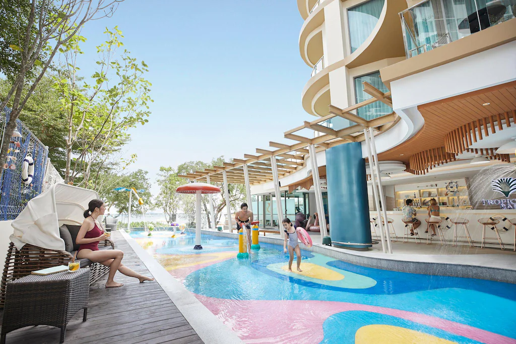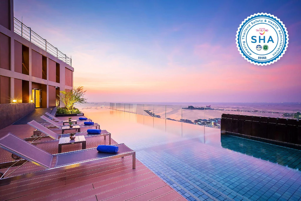 จุดเด่นห้ามพลาด: สระว่ายน้ำ Infinity Pool และ Rooftop Bar สุดอลังการ สระว่ายน้ำแบบไร้ขอบบนชั้น 8 คือมุมมหาชนที่ทุกคนต้องมาเช็คอิน ด้วยทัศนียภาพ 180 องศาของท้องทะเลที่สวยงามจนหลายคนเปรียบว่าเหมือนได้ไปเที่ยวปูซาน ตกเย็นต้องไม่พลาดขึ้นไปจิบค็อกเทลชมพระอาทิตย์ตกที่ Silver Moon Rooftop Bar ซึ่งเป็นบาร์บนดาดฟ้าที่บรรยากาศดีที่สุดแห่งหนึ่งในศรีราชา
