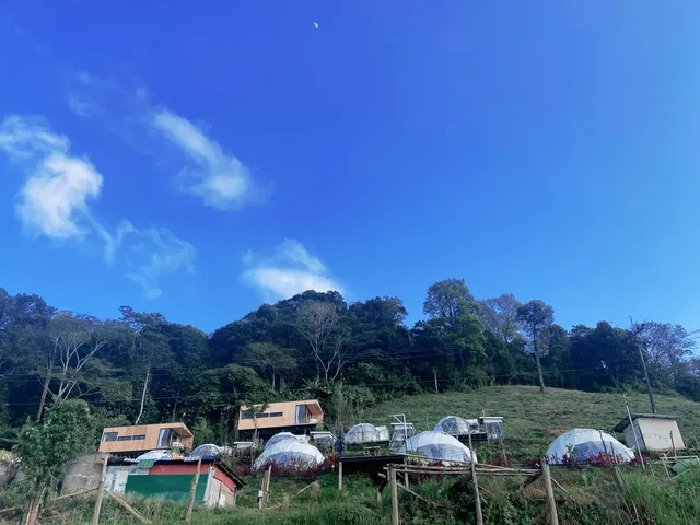 - จุดเด่นที่สุด – ทำเลบนเนินสูงและวิวพาโนรามา: ด้วยที่ตั้งบนไหล่เขา ทำให้มองเห็นวิวทิวเขาสลับซับซ้อนได้แบบไม่มีอะไรมาบดบังที่นี่ยังมีตัวเลือกที่พัก 2 สไตล์ คือเต็นท์โดมใสบนโซนด้านบน และเต็นท์กระโจมผ้าใบคลาสสิกที่โซนด้านล่าง ตอบโจทย์ความชอบที่แตกต่างกัน