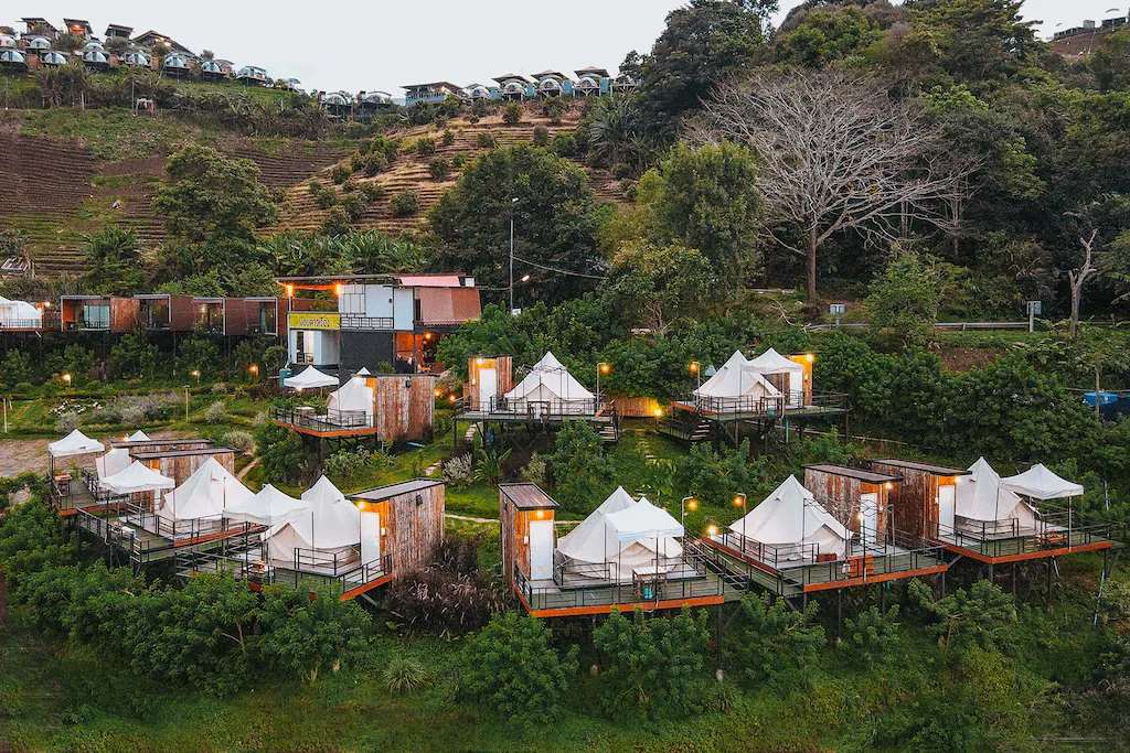 - จุดเด่น (สไตล์สนุก): “นอนเต็นท์ดูดาวสมชื่อ! ที่นี่เป็นที่พักเปิดใหม่ มีทั้งเต็นท์กระโจม และเต็นท์โดมใส ให้ฟีลโรแมนติก ตกเย็นนั่งดูพระอาทิตย์ตกดินสวยๆ ตื่นเช้ามาจิบกาแฟดูหมอกอาหารเช้ามีข้าวต้ม ไข่ลวก กาแฟ โอวัลติน เติมได้ไม่อั้น!”