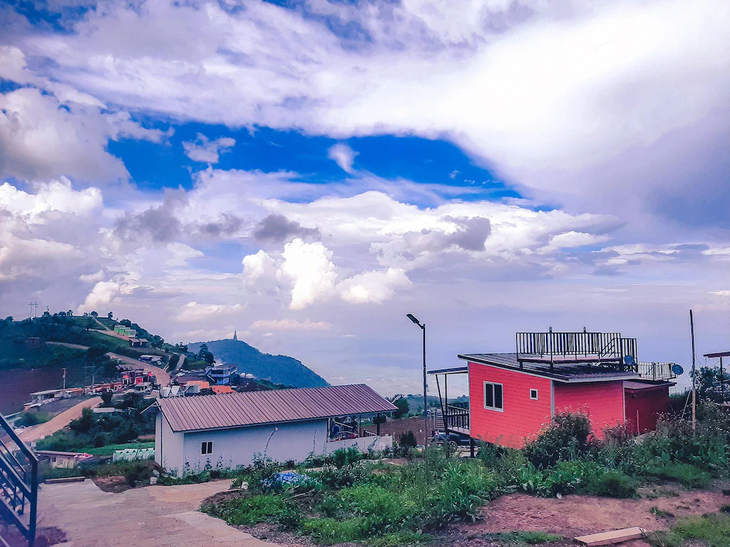 จุดเด่น: ชื่อ “บ้านดาดฟ้าทะเลหมอก” บอกทุกอย่างไว้หมดแล้ว จุดขายหลักคือดาดฟ้าส่วนตัวที่มอบประสบการณ์การชมวิวแบบเป็นส่วนตัว ไม่มีอะไรมาบดบัง ทำเลที่ตั้งได้รับคะแนนสูงจากผู้เข้าพัก (8.5/10 บน Agoda) สามารถมองเห็นวิวไร่สตรอว์เบอร์รีและกะหล่ำปลีที่อยู่ใกล้เคียงได้ นอกจากนี้ยังได้รับการชื่นชมในเรื่องการบริการของพนักงาน อาหารเช้าแสนอร่อย (ข้าวต้ม, กาแฟ) และแน่นอนว่ามีบริการหมูกระทะส่งตรงถึงระเบียงห้อง