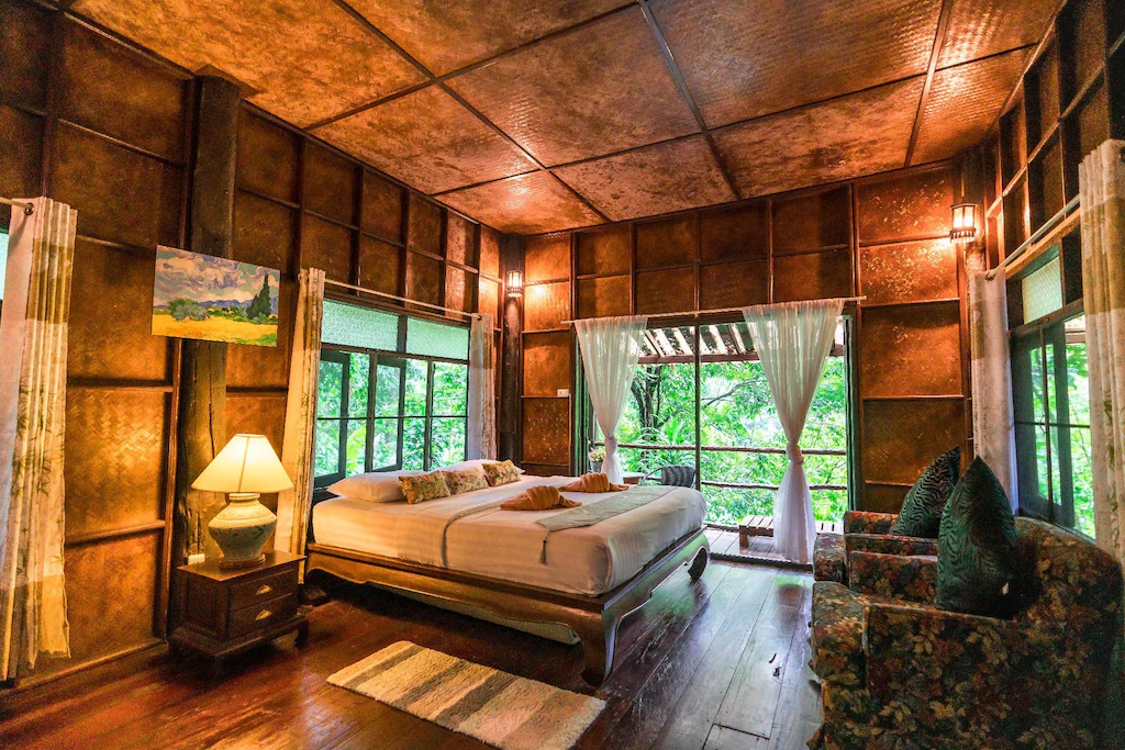- สรุปเนื้อหา: นี่คือที่พักที่เป็นแลนด์มาร์คของแม่กำปองเลยก็ว่าได้! เพราะมี “สะพานแขวน” เหนือยอดไม้ให้แขกได้เดินไปถ่ายรูปสวยๆ ตัวบ้านพักซ่อนตัวอยู่ในป่าทึบและมีลำธารไหลผ่านกลางรีสอร์ท บรรยากาศร่มรื่นและเย็นสบายตลอดวัน ไฮไลท์อีกอย่างคือเหล่า “เจ้านาย” หรือน้องแมวพันธุ์ดีที่คอยเดินมาต้อนรับแขก เหมาะมากสำหรับทาสแมวและคนรักธรรมชาติที่ต้องการความเป็นส่วนตัวสูงและการพักผ่อนที่เหนือระดับขึ้นมาอีกนิดในราคาพรีเมียม