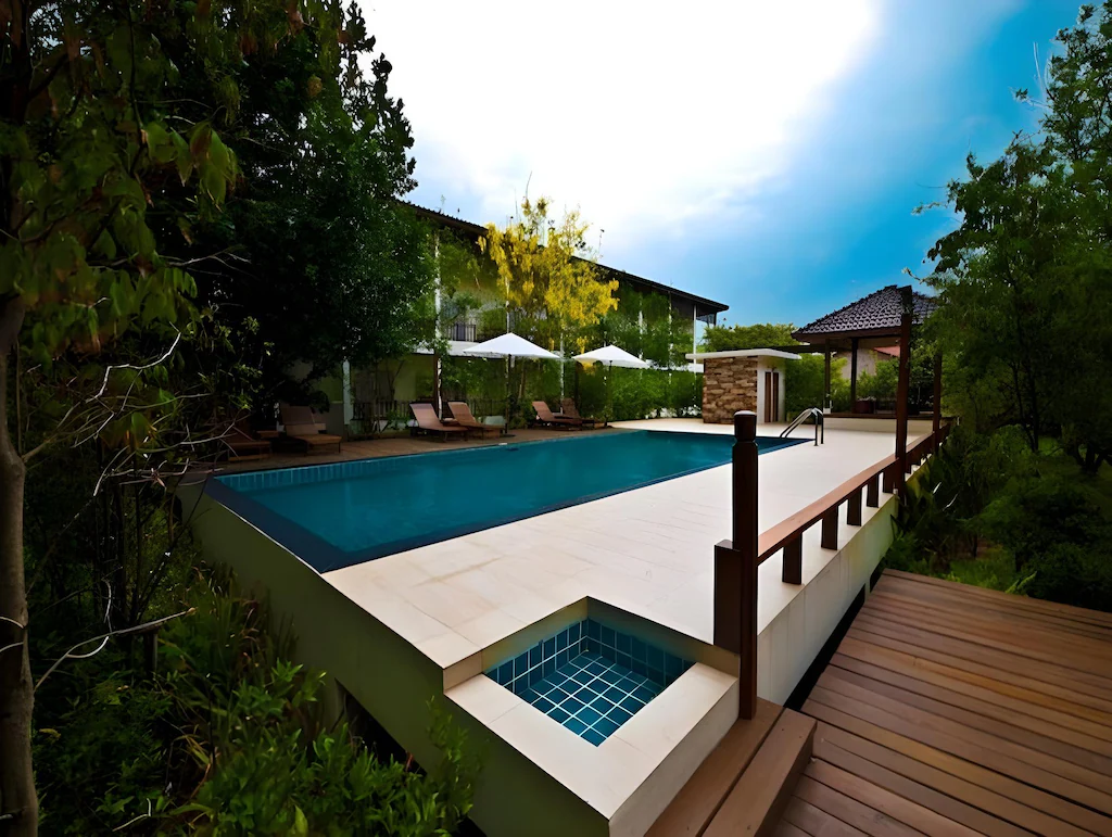| โรงแรมบ้านต้นไม้ | โอเอซิสสีเขียว | สระว่ายน้ำท่ามกลางธรรมชาติ |