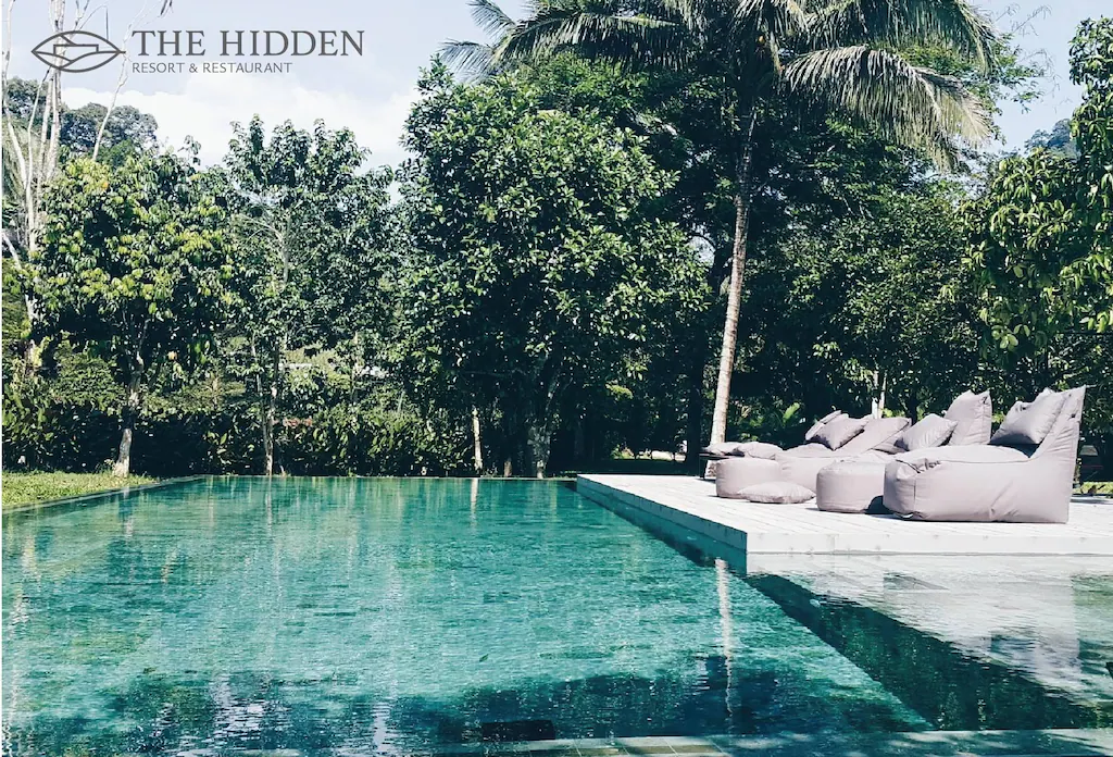 - จุดเด่น: สมชื่อ “Hidden” ที่นี่คือรีสอร์ทที่ซ่อนตัวอยู่ในสวนสวยเขียวชอุ่ม ให้ความรู้สึกสงบและเป็นส่วนตัวสูง ห้องพักเป็นวิลล่าส่วนตัวที่ออกแบบอย่างมีเสน่ห์ ห้องน้ำกว้างขวางเป็นพิเศษ และห้องอาหารบรรยากาศดีริมน้ำ เป็นที่พักที่เหมาะกับการมาพักผ่อนฟอกปอดอย่างแท้จริง