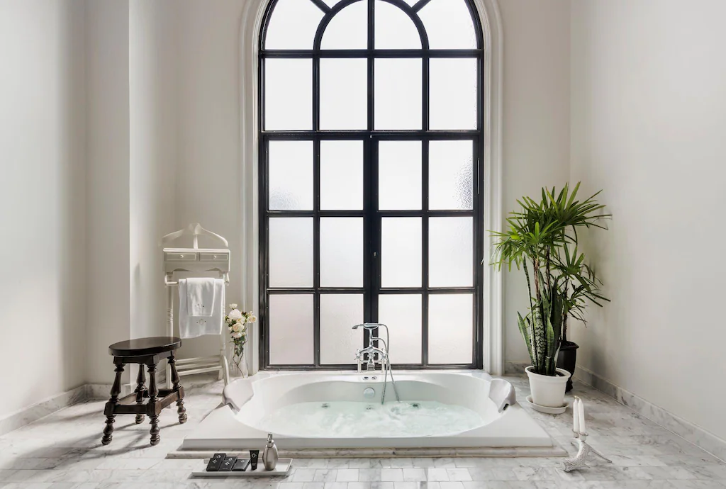 สายคอนเทนต์ สายโรแมนติก ต้องจดที่นี่ไว้เลย! Hotel Once คือโรงแรมบูติกดีไซน์เฉียบ ที่ซ่อนห้อง “Executive Jacuzzi” ไว้ให้คู่รักไปแช่ตัวฟินๆ ท่ามกลางบรรยากาศห้องสีขาวสุดมินิมอล เดินไปเอเชียทีคแค่ 10 นาที และทีเด็ดที่ห้ามพลาดคือ “Top Knot Rooftop Bar” บาร์ดาดฟ้าที่วิวแม่น้ำเจ้าพระยาสวยตะโกน!