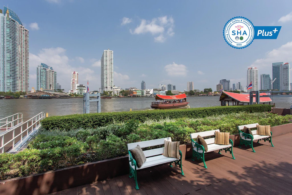ใครอยากได้ฟีลโรงแรม 5 ดาว แบบพื้นที่อลังการ (บนที่ดิน 3.5 เอเคอร์!) ติดริมแม่น้ำเจ้าพระยาแท้ๆ ในราคาที่จับต้องได้ (เริ่มต้นหลักพันปลายๆ) ต้องมงลงที่นี่! สระว่ายน้ำใหญ่มาก, บุฟเฟต์อาหารเช้าที่รีวิวบอกว่า “mind blowing” (สุดยอด) และที่สำคัญ มีเรือรับส่งฟรีไป BTS ด้วย!