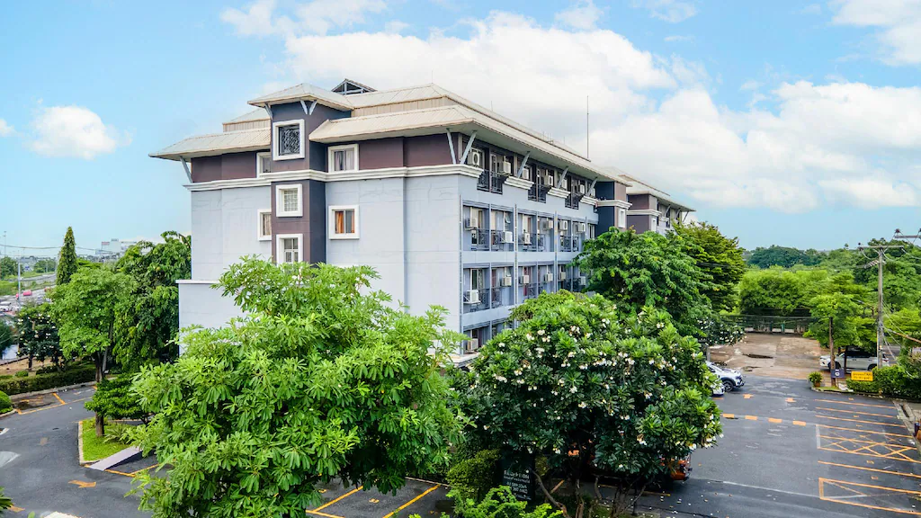 ที่นี่ไม่ใช่ตึกแถว แต่เป็น “รีสอร์ต” จริงจังที่มีอาคาร 2 ตึก ล้อมรอบด้วยสวน ให้บรรยากาศผ่อนคลายในราคาหลักร้อย (ประมาณ $24 USD) จุดขายที่พีคมากคือ หลายห้องมี อ่างอาบน้ำ! ทำเลยังตั้งอยู่บนถนนปัญญาอินทรา ซึ่งใกล้ สนามกอล์ฟปัญญาอินทรา มากๆ สายตีกอล์ฟที่มาออกรอบเช้าต้องเลิฟ