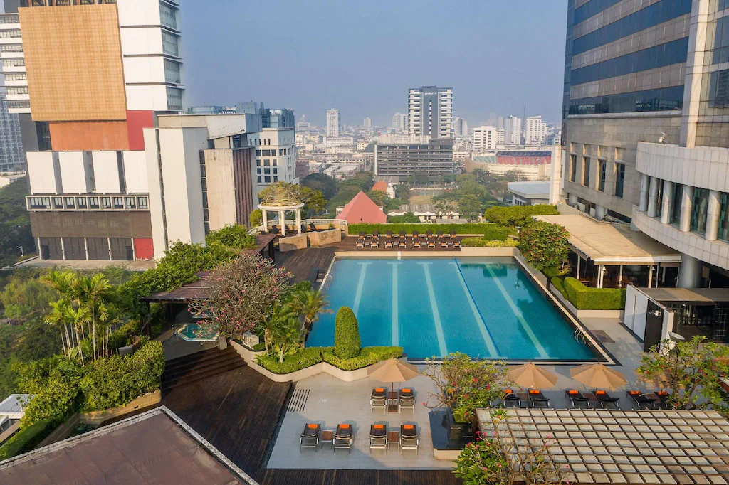 ปิดท้ายด้วย “สวรรค์ของนักช้อป” ตัวจริง! โรงแรมระดับ 5 ดาว แห่งนี้ มีทางเชื่อมโดยตรงเข้าสู่ MBK Center อารมณ์แบบ “ตื่นมาใส่ชุดคลุมอาบน้ำเดินเข้า MBK ได้เลย” (แต่อย่าทำจริงนะครับ!) นอกจากความสะดวกสบายในการช้อปปิ้งแล้ว ที่นี่ยังมีหนึ่งในฟิตเนสโรงแรมที่อลังการที่สุดในกรุงเทพฯ นั่นคือ The Olympic Club Fitness Centre 76 ที่มีแม้กระทั่งสนามเทนนิสบนดาดฟ้า!