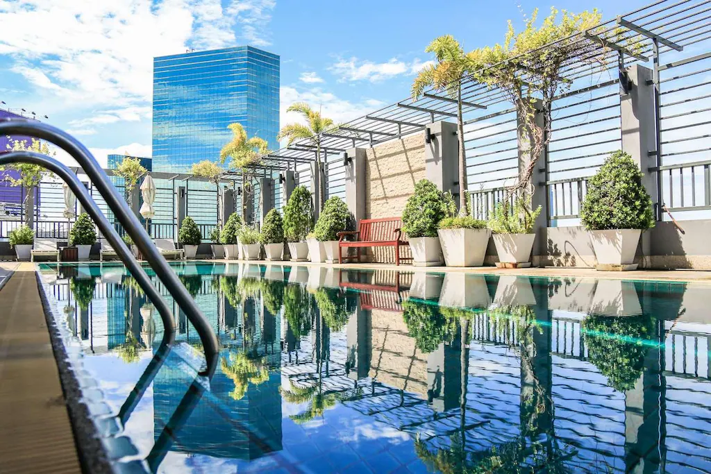 - The Vibe (บรรยากาศ): โรงแรม 4 ดาวสุดคลาสสิก ให้ความรู้สึกเป็น “โอเอซิส” กลางเมือง มีสระว่ายน้ำกลางแจ้งขนาดใหญ่, ฟิตเนส , และสวนสวยร่มรื่น