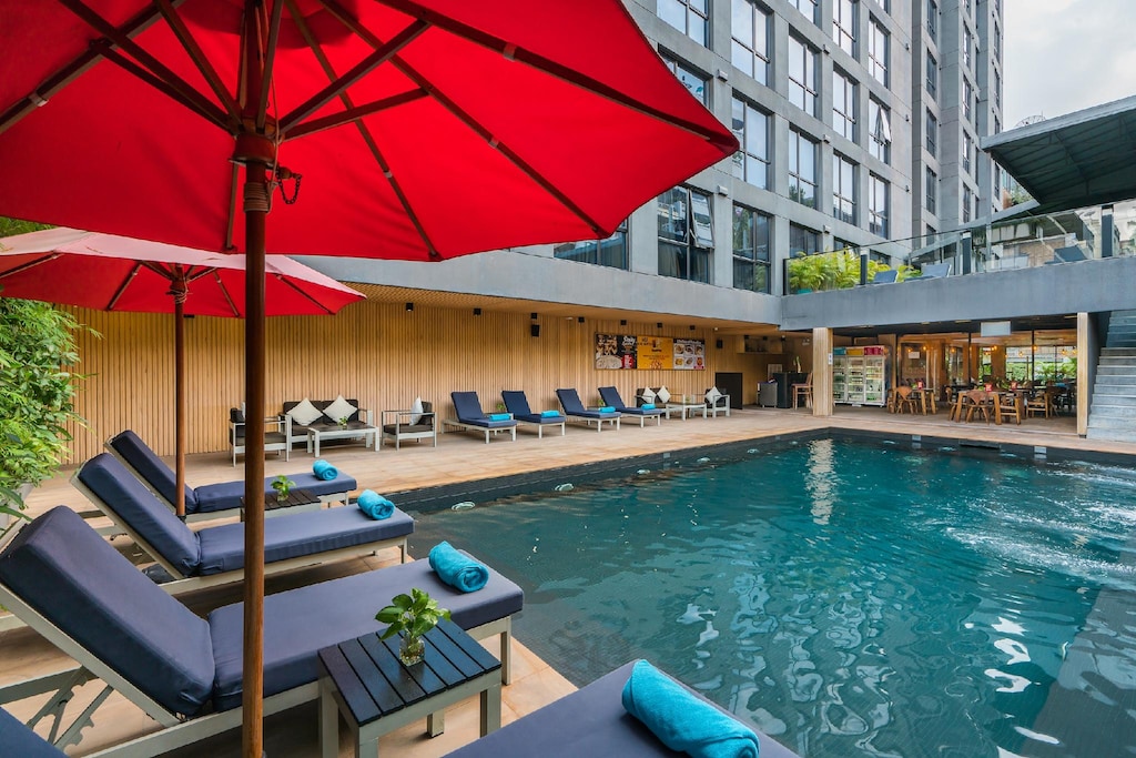โรงแรมบูทีคดีไซน์สวย ที่มีจุดขายหลักคือ “สระว่ายน้ำบนดาดฟ้า” (Rooftop Pool) ที่ให้คุณว่ายน้ำไปชมวิวตึกสูงของกรุงเทพฯ ไปด้วย ทำเลที่ตั้งดีเยี่ยม อยู่ในซอย 14 ที่เงียบสงบ แต่เดินข้ามถนนก็ถึง “Terminal 21”