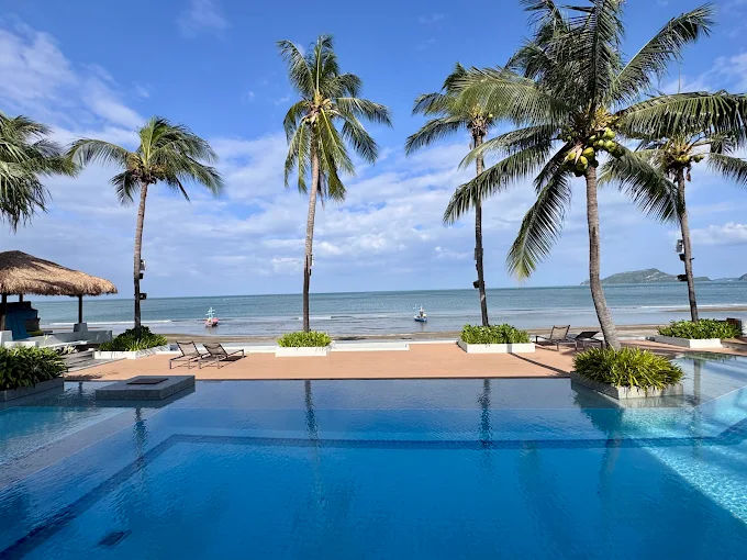 - Vibe Check (จุดเด่น): “อาณาจักรของครอบครัว” ตัวจริงเสียงจริง! ที่นี่คือเบอร์หนึ่งเรื่องสันทนาการสำหรับเด็ก มีสระว่ายน้ำใหญ่ 2 สระ พร้อมสไลเดอร์, สนามเด็กเล่นกลางแจ้ง, และ Kids’ Room แถมยังใจดี Pet-friendly พาน้องหมามาวิ่งเล่นริมหาดได้เลย