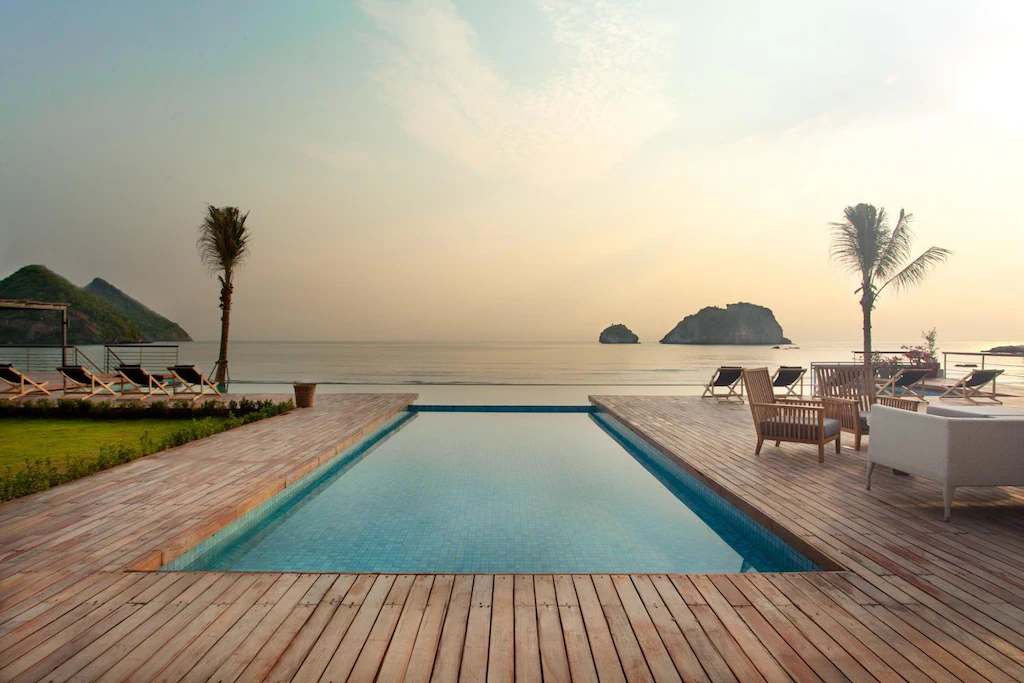 - Vibe Check (จุดเด่น): “ที่พักสายดีไซน์” ที่มีความเป็นเอกลักษณ์สูงสุด!ที่นี่คือรีสอร์ทบูทีคสุดหรูที่ผสมผสานสถาปัตยกรรมสมัยใหม่เข้ากับวัสดุธรรมชาติ (เช่น หลังคาฟางข้าว) ได้อย่างลงตัว มีห้องพักเพียง 10 ห้อง 1 ทำให้ได้ “หาดส่วนตัว” ที่เงียบสงบและไพรเวทจริงๆ