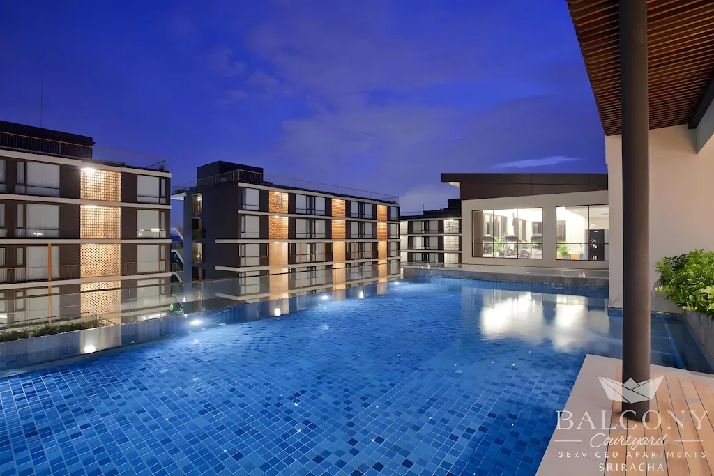 - “บัคโคนี คอร์ตยาร์ด ศรีราช โฮเต็ล แอนด์ เซอร์วิซ อพาร์ตเมนต์” – ชื่อเต็มยืนยันว่าเป็น Serviced Apartment