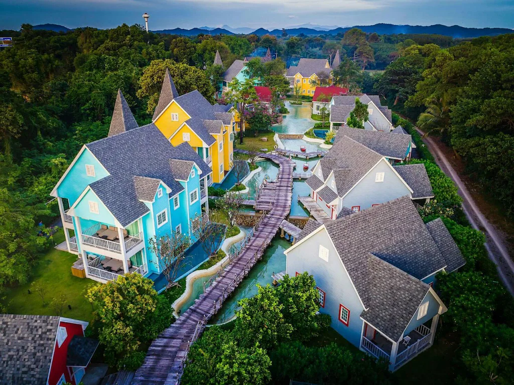 - จุดเด่น (The Angle): ที่สุดของสายคอนเทนต์! ที่นี่คือ “Destination Resort” ที่คนตั้งใจมาเพื่อ “ถ่ายรูป” ด้วยธีมหมู่บ้านชาวประมงตะวันตกสีสันสดใส คะแนนรีวิวสูงมาก (8.9 จาก 2,509 รีวิว ) และอาหารเช้า “ดีเวอร์” แต่ต้องรู้ว่า ที่นี่อยู่ “หาดคุ้งวิมาน” และ “ไม่ได้ติดหาด” แต่ต้อง “เดินข้ามถนนไป” รีวิวบอกชัดว่า “ห่างไกลผู้คนมาก ไม่มีแสงสีเสียง” ซึ่งนี่คือจุดขายสำหรับคนชอบความสงบ