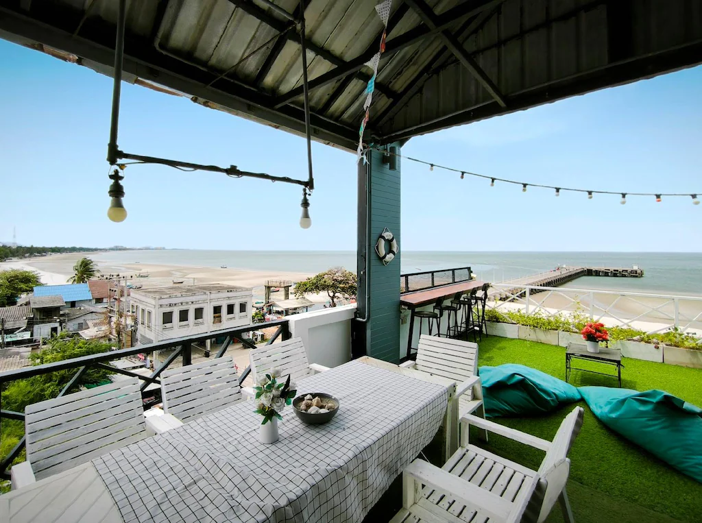 - “ทำเลที่ตั้งดีเยี่ยม (คะแนน 9.0) วิวสวยทั้งทะเลและภูเขาจากดาดฟ้า เดินไปหาดหัวหินแค่ 5 นาที”