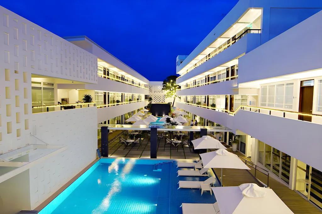 - สรุปเนื้อหา: คริมสัน ตั้งอยู่ในย่านที่เรียกว่า “Station Zero” ซึ่งเป็นโซนโรงแรมหรูที่แยกตัวออกมาจากหาดสาธารณะ ทำให้ทรายหน้าโรงแรมขาวสะอาดและไม่มีคนนอกมารบกวน ตัวโรงแรมตกแต่งแนวโมเดิร์นทรอปิคอลที่ใช้สีสันสดใส ไฮไลท์คือสถาปัตยกรรมที่ดูเหมือนงานศิลปะและสระว่ายน้ำที่เชื่อมต่อกับทะเลพอดิบพอดี เหมาะมากสำหรับสายถ่ายรูปที่ต้องการความเป็นส่วนตัวและความสนุกไปพร้อมๆ กัน