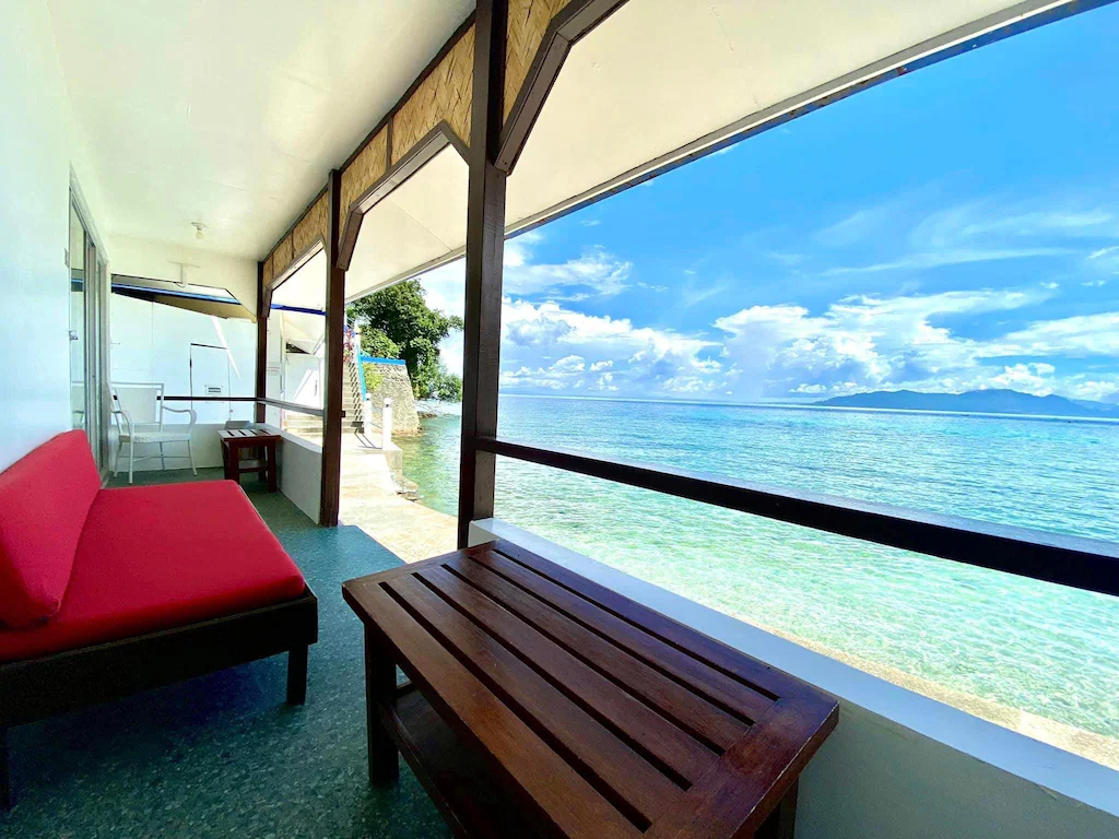 - ที่พักสไตล์คลาสสิกที่ตั้งอยู่บนหน้าผาริมทะเลเห็นวิวเกาะ Pescador ชัดเจน ตัวรีสอร์ทตกแต่งด้วยวัสดุธรรมชาติให้ฟีลติดเกาะที่หรูหรา ห้องพักมีหลายระดับราคาให้เลือก ที่นี่ขึ้นชื่อเรื่องความสะดวกในการดำน้ำ เพราะแค่สวมตีนกบแล้วเดินลงน้ำหน้าโรงแรมก็เจอฝูงปลาและเต่าแล้ว ตอนกลางคืนย่าน Panagsama จะคึกคักไปด้วยบาร์และร้านอาหารวัยรุ่น เป็นจุดพักที่สมดุลระหว่างกิจกรรมดำน้ำและชีวิตกลางคืนครับ