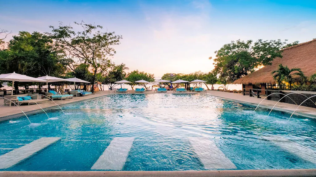 - บลูวอเตอร์ มาริบาโก เป็นรีสอร์ทที่ให้ความรู้สึกอบอุ่นแบบฟิลิปปินส์แท้ๆ ครับ ห้องพักเป็นสไตล์บังกะโลมุงจากที่กว้างขวางและดูสบายตา จุดเด่นคือมีเกาะส่วนตัวเล็กๆ (Alegrado Island) อยู่ห่างจากหน้าหาดเพียงนิดเดียว ซึ่งคุณสามารถพายเรือคายัคหรือเดินไปได้ในช่วงน้ำลด ที่นี่มีสระว่ายน้ำกระจายอยู่หลายโซนและมีกิจกรรมพื้นเมืองให้ทำเยอะมาก เช่น การเต้นรำแบบฟิลิปปินส์ในมื้อค่ำ อาหารที่นี่ขึ้นชื่อเรื่องความสดของอาหารทะเลและรสชาติแบบท้องถิ่นดั้งเดิม เป็นที่พักที่คุ้มค่าและได้สัมผัสวัฒนธรรมเซบูอย่างใกล้ชิดครับ