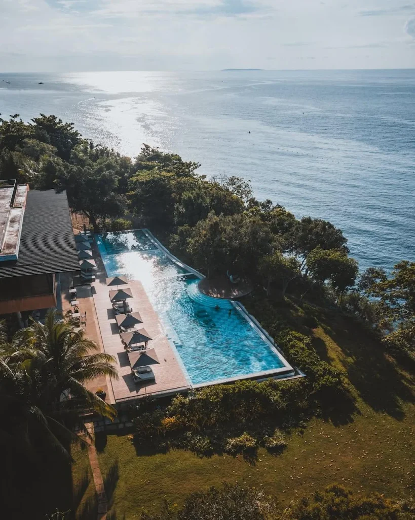 จุดเด่น: สระว่ายน้ำ Infinity Pool ยาว 100 เมตร และวิวพระอาทิตย์ตกที่สวยที่สุดในแมคตัน