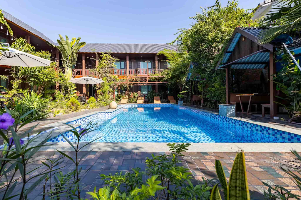 จำปา บูติค เป็นโรงแรมที่ซ่อนตัวอยู่ในย่านใจกลางเมืองแต่ให้ความรู้สึกเหมือนอยู่วิลล่าส่วนตัวครับ จุดเด่นคือสระว่ายน้ำที่น้ำใสแจ๋วและล้อมรอบด้วยต้นไม้ ช่วยตัดขาดความวุ่นวายจากภายนอกได้ดีมาก ห้องพักตกแต่งเรียบง่ายแต่มีระดับ เน้นความสะอาดและความสบายของแขกผู้เข้าพัก ที่นี่ตั้งอยู่ระหว่างตลาดเช้าและริมน้ำโขง ทำให้คุณสามารถเลือกเที่ยวได้ทั้งสองสไตล์ บรรยากาศตอนเย็นรอบๆ โรงแรมจะเริ่มคึกคักด้วยร้านอาหารและแสงสีจากลานน้ำพุ เป็นทางเลือกที่ดีสำหรับคนที่รักความสงบแต่ยังอยากอยู่ใกล้แหล่งท่องเที่ยวครับ