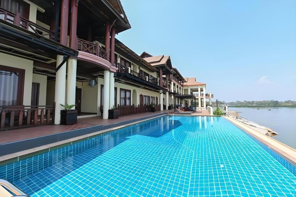 จุดเด่น: โรงแรมที่ใหญ่ที่สุดบนเกาะดอนโขง พร้อมสระว่ายน้ำริมโขงที่เห็นวิวพาโนรามา