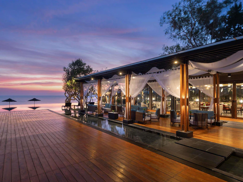 - สรุปโรงแรม: ที่พักดีไซน์ขาวคลีนที่ให้ความรู้สึกผ่อนคลาย แบ่งเป็นฝั่งทะเลและฝั่งสวน ห้องพักแบบพูลวิลล่าที่นี่สวยมาก ร้านอาหาร Oceanside ติดชายหาดคือจุดเดทตอนค่ำที่โรแมนติกที่สุดแห่งหนึ่งในหัวหินด้วยแสงไฟสลัวและเสียงคลื่น