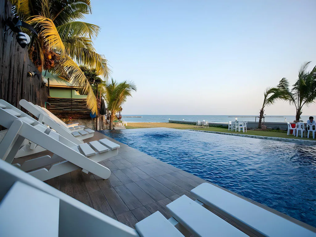 จุดเด่น: ดีไซน์โมเดิร์นสุดปัง สระว่ายน้ำสวยพรีเมียม และมีชายหาดส่วนตัวหน้าห้อง!