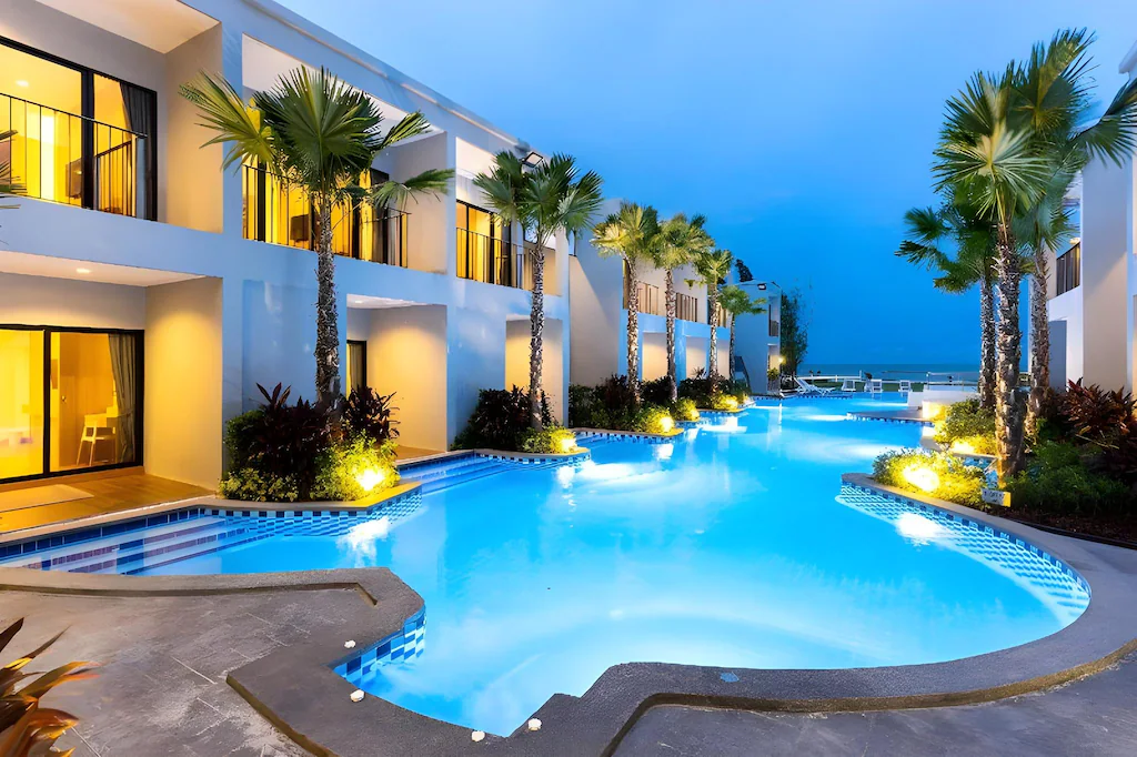 - สรุปโรงแรม: รีสอร์ทหรูที่นำเสนอกลิ่นอายความรุ่งเรืองในอดีตของเพชรบุรีผ่านดีไซน์ที่งดงาม ห้องพักทุกห้องตกแต่งอย่างมีสไตล์ เพดานสูงโปร่งทำให้รู้สึกผ่อนคลาย มีสระว่ายน้ำยาวขนานไปกับแนวชายหาด บรรยากาศยามค่ำคืนจะโรแมนติกมากด้วยแสงไฟประดับสวยงาม เหมาะสำหรับคู่รักที่ต้องการความหรูหราในราคาที่ไม่แพงจนเกินไป ที่สำคัญคืออยู่ใกล้จุดชมปลาวาฬบรูด้า ทำให้การวางแผนเที่ยวเป็นเรื่องง่ายมากครับ