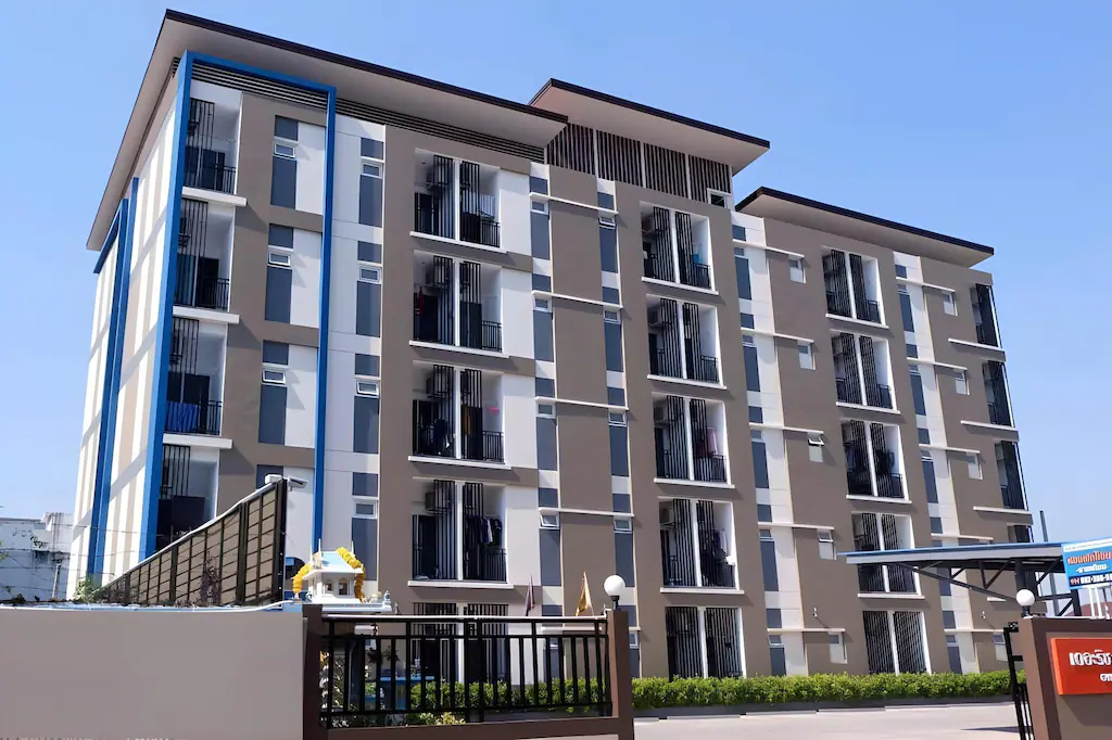 - สรุปเนื้อหาที่พัก: สายลอฟท์ต้องกดเลิฟ! เดอะริช ราชพฤกษ์ เป็นที่พักกึ่งอพาร์ทเม้นท์ที่ตกแต่งได้เท่มากด้วยปูนเปลือยและงานเหล็ก ห้องพักกว้างขวางมีระเบียงให้ออกไปรับลม แถมตั้งอยู่ใกล้กับถนนราชพฤกษ์ที่เต็มไปด้วยคอมมูนิตี้มอลล์สุดชิค บรรยากาศที่นี่จะดูวัยรุ่นและทันสมัย เหมาะสำหรับคนที่ต้องการที่พักราคาย่อมเยาแต่ดูดีเพื่อถ่ายรูปลงโซเชียลได้ไม่อายใคร การเดินทางไปเซ็นทรัล เวสต์วิลล์ หรือเดอะคริสตัลก็สะดวกเพียงไม่กี่นาที (ห่างจากใจกลางบางกรวยประมาณ 4 กม.)