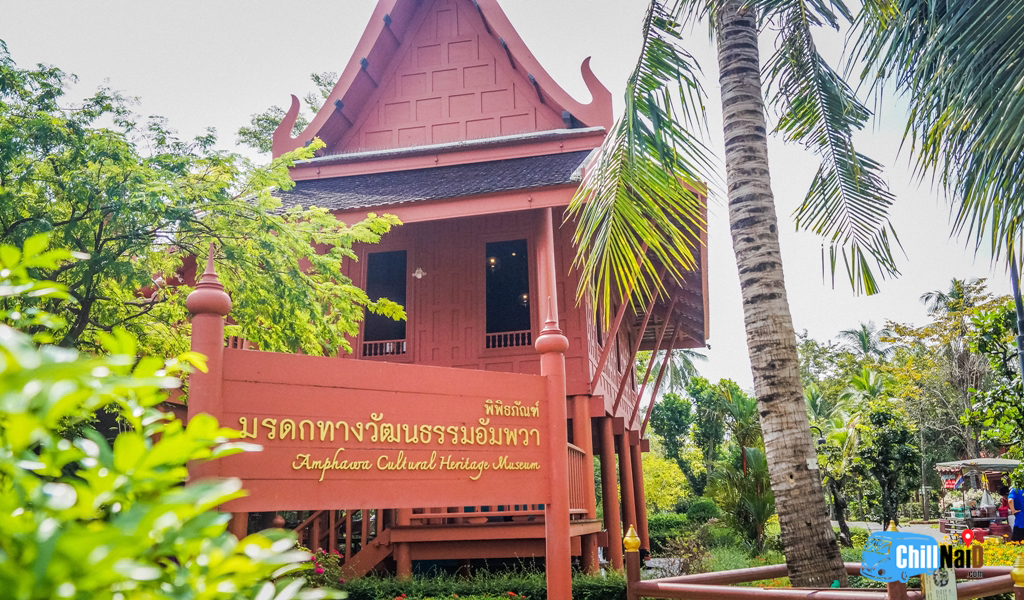 ต่อมาเป็นเรือนพิพิธภัณฑ์มรดกทางวัฒนธรรมอัพวา ในเรือนนี้จะแบ่งออกเป็น 3 ห้องใหญ่ โดยห้องแรกเป็น หอกลาง ในห้องนี้จะจัดแสดง เครื่องเบญจรงค์ เครื่องถ้วย หัวโขนต่างๆ รวมไปถึงความเป็นอยู่ของผู้คนในสมัยนั้นได้อย่างชัดเจน