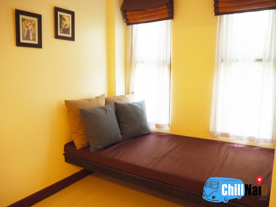 เราพักตึกนี่ค่ะ มีมุมไว้นั่งเล่น อ่านหนังสือด้วยนะคะ หนังสือเยอะดี หนอนหนังสือคงชอบ บรรยากาศเงียบๆ น่าพักมากมาย