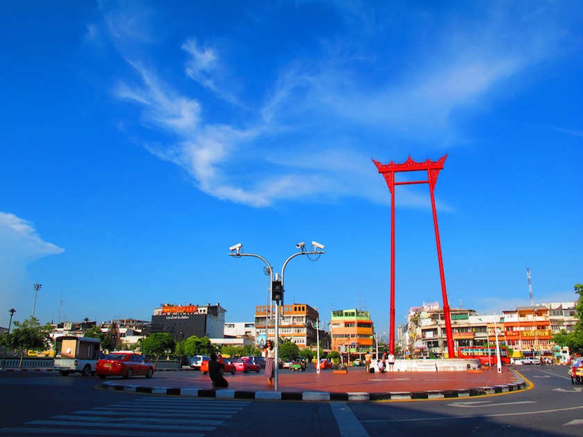 เสาชิงช้า โดดเด่นเป็นสง่า สัญลักษณ์ของเมืองกรุงเทพมหานคร โดยรัชกาลที่ 1 ทรงโปรดเกล้าฯ ให้เป็นที่ตั้งของโบสถ์และเทวสถานของศาสนาพราหมณ์ ในอดีต เสาชิงช้า คือใจกลางเมืองกรุงเทพ หรือ “สะดือเมือง” เป็นเสาไม้ขนาดใหญ่ สีแดง ในยุคก่อน เสาชิงช้านี้ ใช้สำหรับประกอบพิธีโล้ชิงช้า ในพระราชพิธี “ตรียัมปวาย ตรีปวาย” ของศาสนาพราหมณ์-ฮินดู แต่เสาที่เห็นในปัจจุบันนี้ เป็นเสาต้นใหม่แล้ว วัสดุหลักๆ ทำจากไม้สักทองจากเมืองแพร่