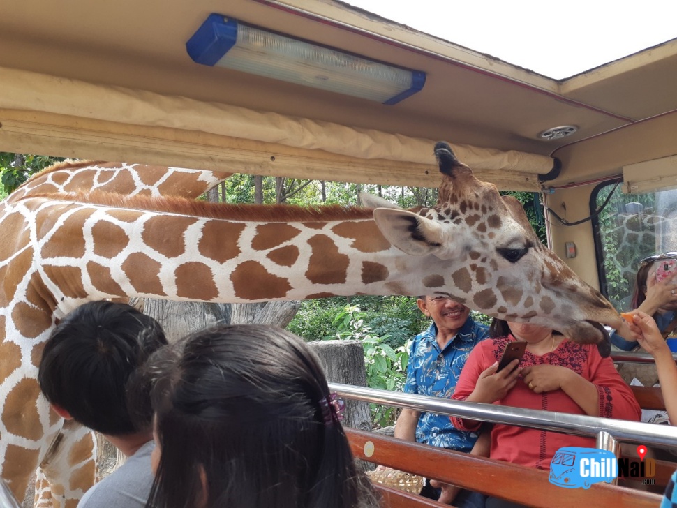 พี่ยีราฟคอยาว มาทักทายถึงในรถรางกันเลยทีเดียว ^^